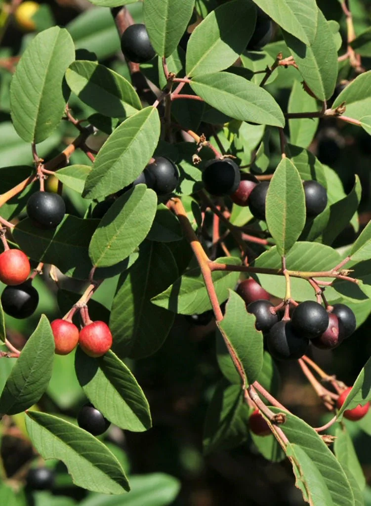 A fire-resistant evergreen shrub, coffeeberry makes for an amazing hedge. It’s got dark green leaves and red branches. Make sure to watch its berries turn color over time: from red to purple to black. This variety is more compact, making it very demure, very mindful.